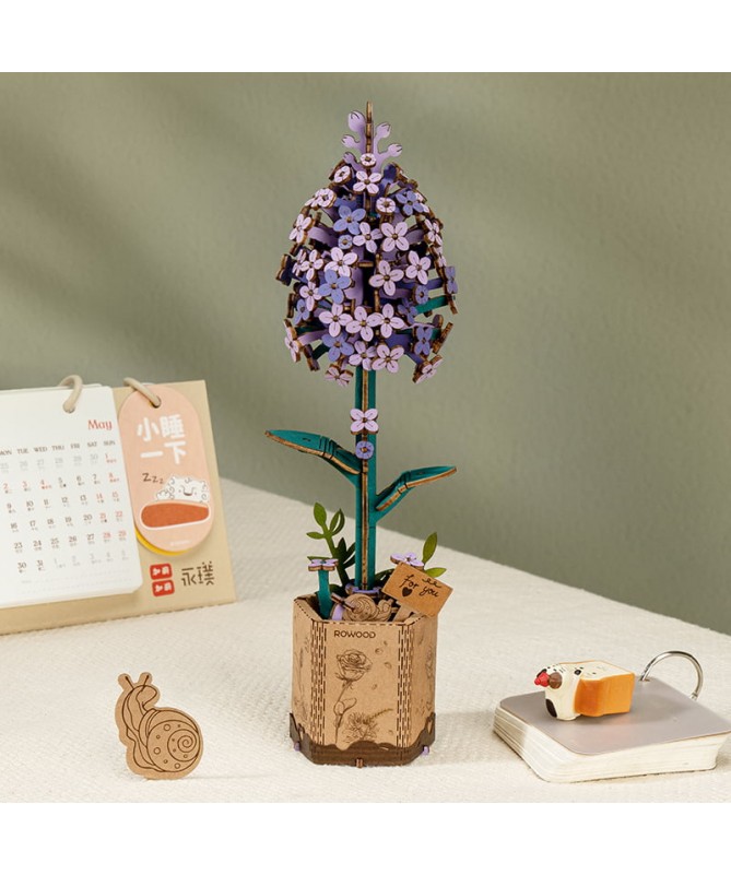 MODELO LILA – La lila simboliza la primera flor y evoca una sensación de serenidad. Da rienda suelta a tu creatividad con su tallo flexible, que te permite disfrutar de su belleza por sí sola en una maceta de papel o combinarla armoniosamente con otras flores de la serie Wooden Bloom Craft