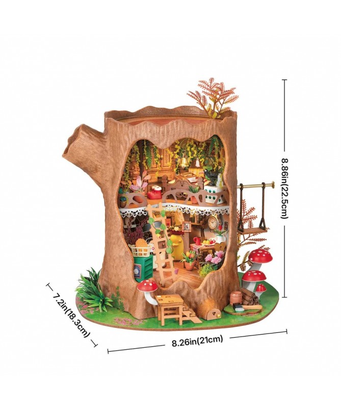 La Casa del Árbol de Cuento de Hadas Robotime DG179 te invita a adentrarte en un mundo forestal mágico, lleno de encanto e imaginación. Este encantador diorama en miniatura representa una acogedora casa construida dentro de un robusto tronco, donde la naturaleza se entrelaza con la creatividad. Cada detalle captura la magia de las pequeñas viviendas del bosque, desde baratijas reutilizadas convertidas en muebles hasta la vibrante atmósfera de cuento de hadas de la vida en el bosque.