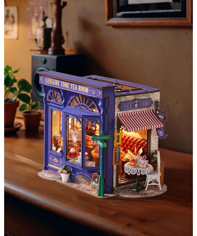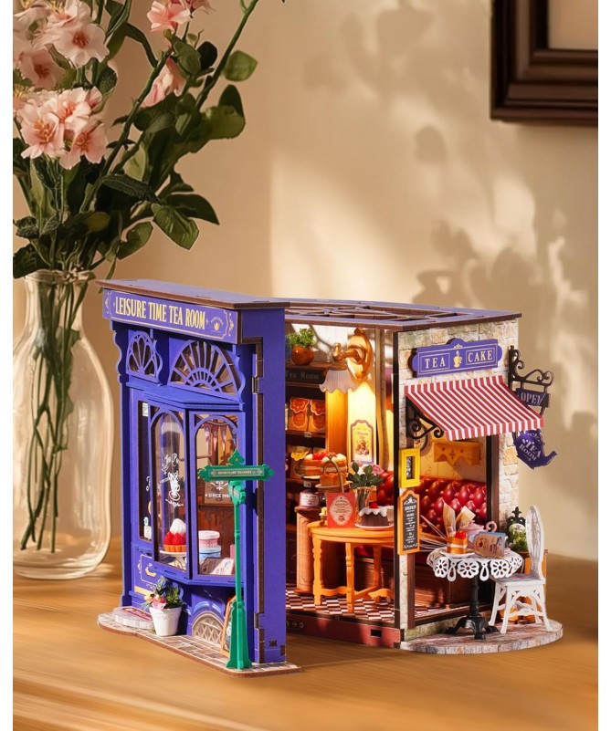 Cruza la puerta y descubre un salón de té en miniatura, bañado de luz y serenidad. Este sujetalibros DIY recrea la atmósfera acogedora y cálida de un salón de té inglés, donde el tiempo parece detenerse.